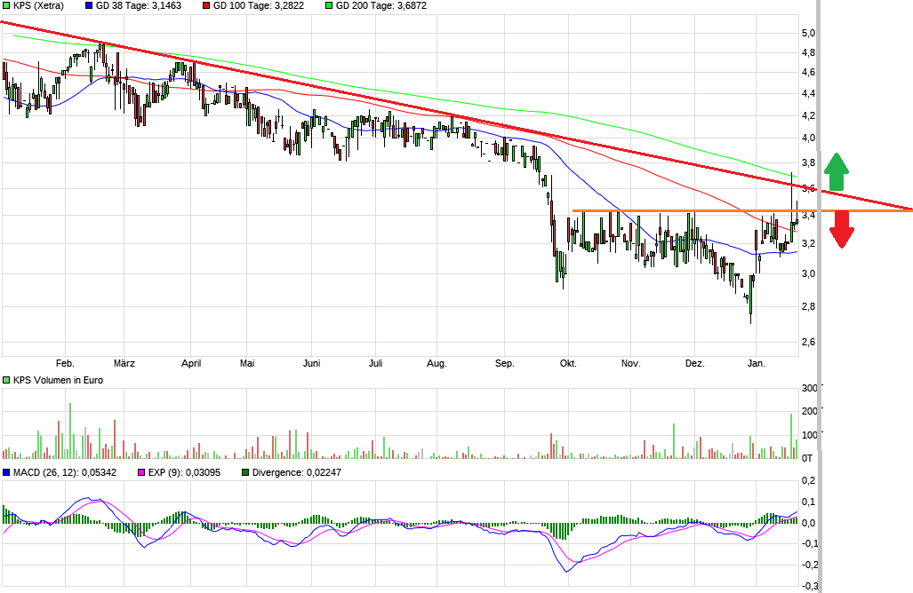 Erstmal muss der Abwärtstrend nach oben signifikant durchbrochen werden. Im Chart von Katjuscha gut zu sehen. Solche Ausschläge hatten wir schon früher und dann ging es weiter runter! Von KPS unverändert Funkstille zur Lage/Entwicklung/Aussichten, usw. Woher soll Phantasie für Anleger zum Einsteigen kommen? Sollten die Zahlen noch enttäuschen, na ja...