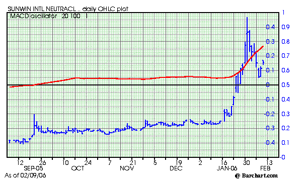 Das am 09.02.2006 von SUNWIN durchgeführte Investorenessen hat den potenziellen Investoren mit all zu großer Wahrscheinlichkeit dann doch nicht geschmeckt. Anders kann man den zurück kommenden Kurs nicht beurteilen. Ein weiteres Indiez dafür sind die rückläufigen Umsätze im Papier. Die Kurserholung letzter Woche könnte somit doch ein Zeichen dafür sein das hier der Kurs für das Investorenessen geschönt werden sollte.