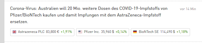 Dazu passend die Meldung, dass Australien kein AZ verwendet und alles durch das x-Mal teurere BionTech ersetzt. Das machen die bestimmt nur, weil sie Angst vor AZ haben?