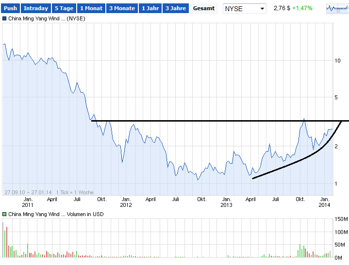 Also gestern war auch eine Pennystockempfehlung unter http://www.sbwire.com zu finden. Charttechnisch hätte ich bei 3 US-$ eigentlich mit einer Konsolidierung gerechnet. Nach den Empfehlungen und dem eventuellen Einstieg von Lemmingen könnte ich mir jetzt aber doch einen Anstieg auf 4-4,50 US-$ vorstellen. Ich finde es auch merkwürdig, wenn Maydorn bei einem derartigen Titel die Kurse treiben könnte und denke amerikanische Pennystockempfehlungen haben da mehr Einfluss. Generell ist es aber nachvollziehbar, wenn Frischlinge ohne tiefergehende Börsenkenntnisse sich bei derartigen Diensten ihre Inspirationen holen. Deren Investments sind für eine neue Blasenbildung ja auch wichtig. Und bereits investierte Anleger können sich durch Stops absichern, die Stop-Loss-Fishing-Gefahr ist bei Ming Yang nach meiner Ansicht aktuell eher gering, lg, Francis.