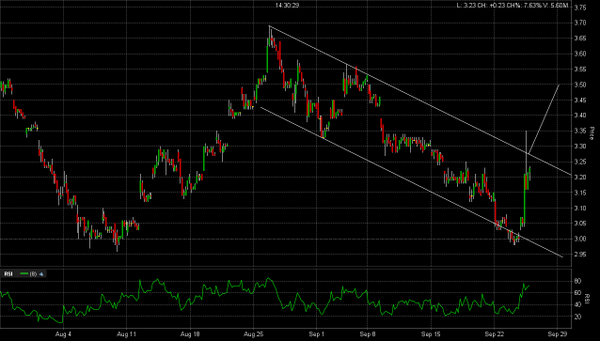 Manche US Trader gehen schon vom Channelbre­ak und vom ersten Ziel auf 3.50 $