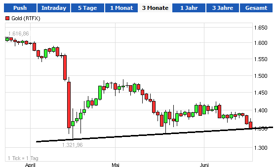 Jo, war kurz unter 1350$, wenn es morgen da durchfällt, dann bin ich STRONG Short.