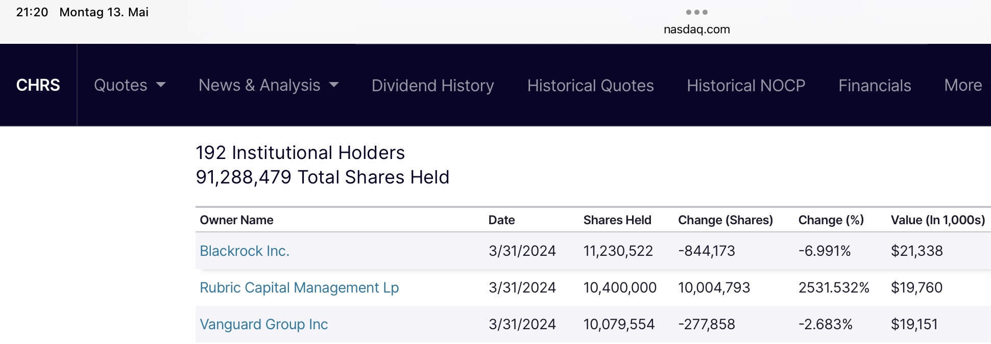 CHRS-Kommentare, Q4'23-Gewinn-Pressemitteilung, 13. März 2024.