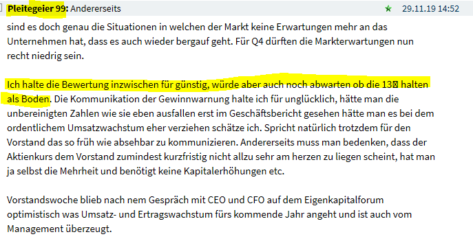 sind es doch genau die Situationen in welchen der Markt keine Erwartungen mehr an das Unternehmen hat, dass es auch wieder bergauf geht. Für Q4 dürften die Markterwartungen nun recht niedrig sein.