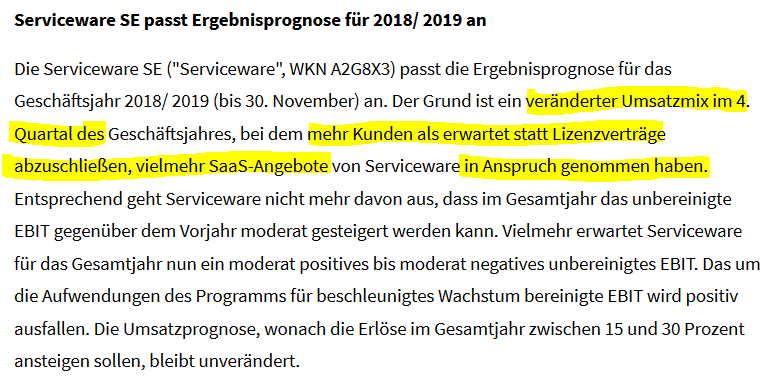 also langfristig sehe ich das als klaren Vorteil wenn mehr SaaS als Lizenzen verkauft werden. Die Saas-Verträge bringen kontinuierlich Ertrag auch auch in Zeiten wo es schlecht läuft und nix oder wenig verkauft wird. Und die Margen sind in der Regel bei sochen SaaS-Verträgen deutlich höher...