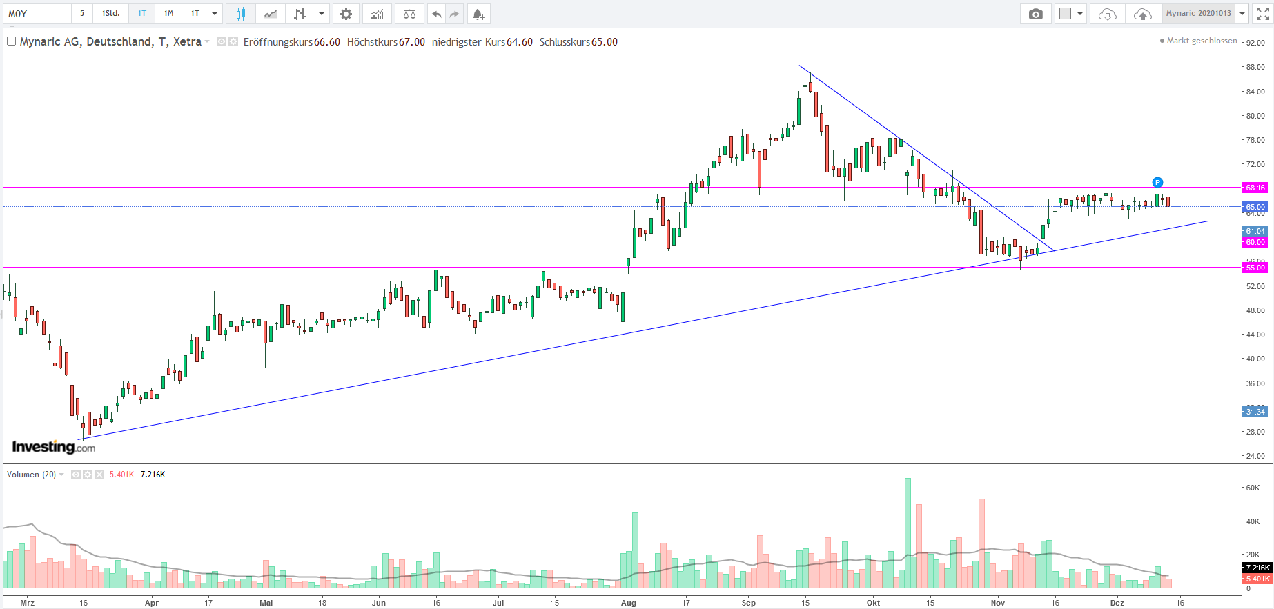 1. Unterstützung bei 61,40 €, dann stärkere bei 56,20, bei größeren Korrektur geht's bis zur 46,20 €