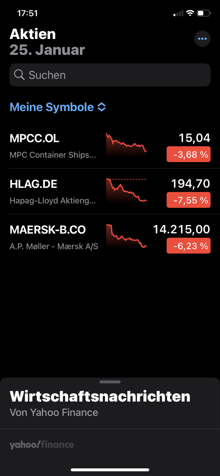 Stimmt. Nur ist Hapag Lloyd zuvor ausgehend von einem Kursniveau von 175 € innerhalb von zwei Wochen auf 226 EUR gestiegen und konsolidiert seither den Anstieg. Hapag Lloyd heute erneut +3%.