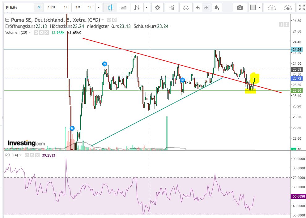 Leerverkäufer kämpfen gerade gegen eine steigende Puma die nach oben springen will. Bin gespannt,, wo wir heute Abend um 22 Uhr stehen werden.