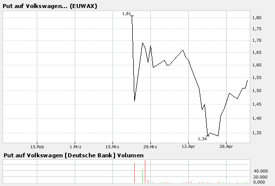 drum hab ich mich seither auch leicht mit (langzeitigen) Puts auf VOW und VOW3 eingedeckt: z.B. der DE000DB801X8 (Volkswage.|P|120|06.08|DBK) läuft sich im Moment recht gut an ...