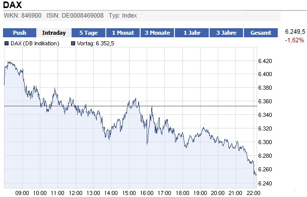 DOW um 150 Punkte gefallen und Dax auch