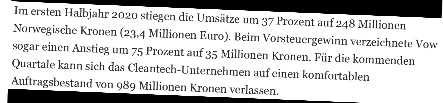 Die Tochterunternehmen von vow sind ja breit aufgestellt. Sicherlich bringen die Aufträge der Abfalltechniksysteme von der Schiffsindustrie im Moment die meisten Umsätze.