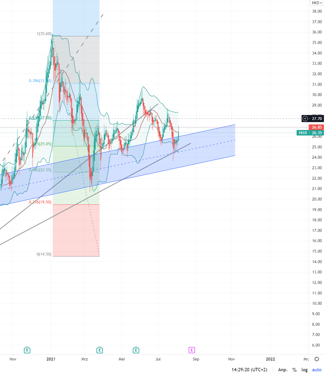 bei 23,50 HKD. Exakt auf dem Niveau hatte der Wert letztes Jahr um Oktober das Signal für seinen Ausbruch gesetzt.