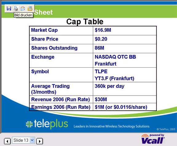 TelePlus CEO, Marius Silvasan, will discuss this acquisition in a live webcast from The Wall Street Reporter Small Cap Discovery Conference in New York City at 8:30 am ET today. The webcast can be accessed at: http://www.investorcalendar.com/IC/CEPage.asp?ID=106057&CID=
