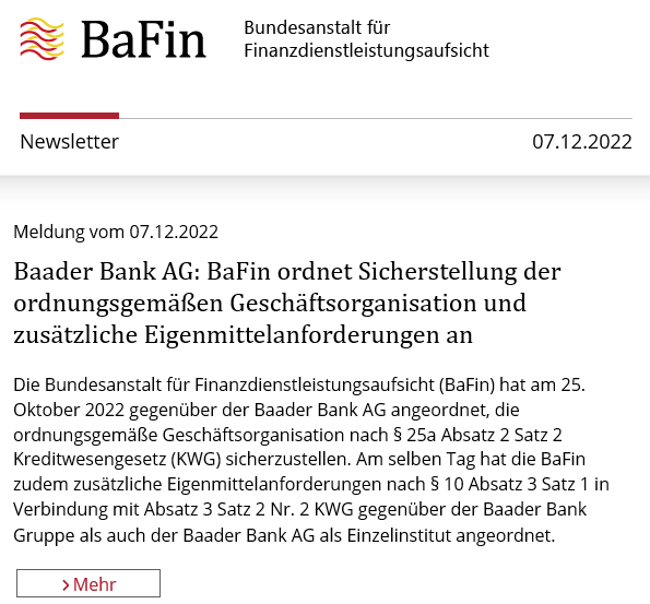 sondern diese soll im Wesentlichen in Kooperation mit der Baader Bank betrieben werden.