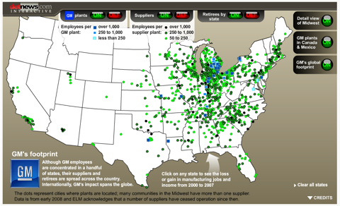 Hier ist eine fantastische interaktiven Karte, mit freundlicher Genehmigung der Detroit News, demonstriert die beispiellose Auswirkungen, die die GM-Konkurs wird in den USA