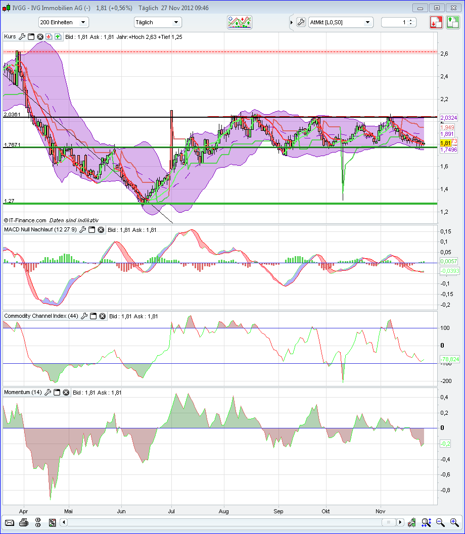 hoffe, dass wir am unteren bollinger band "abgeprallt" sind, wir in diesem bis zur Konsolidierung des daxes, spekuliere auf 6.900 Points, bleiben und dann im deezember aufgrund einer positiven News die 2 eus nachhaltig überwinden werden.