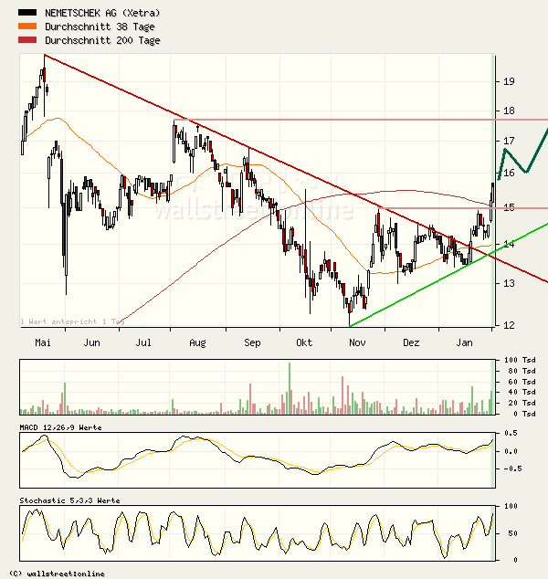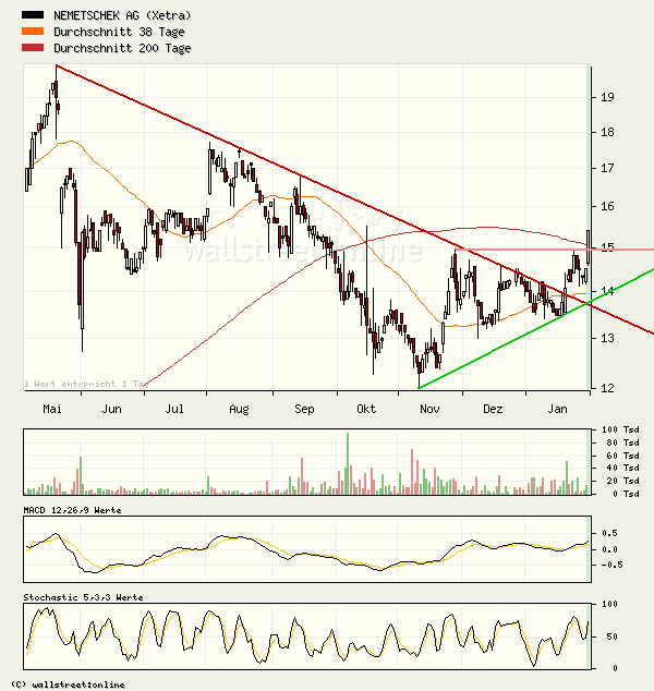 Entweder die Leute nehmen einfach keine Notiz von Nemetschek oder aber sie betrachten den vorangegangenen Anstieg auf 16,8 bereits als ne Art vorweggenommene Übernahmerallye.