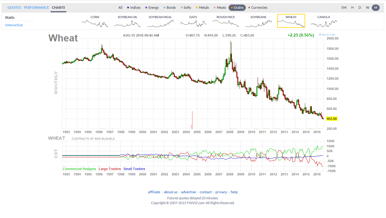 Anbei Chart von finviz. Angeblich stand schon mal Weizenpreis in 1996 bei ca. 1900 und das ist definitiv falsch.