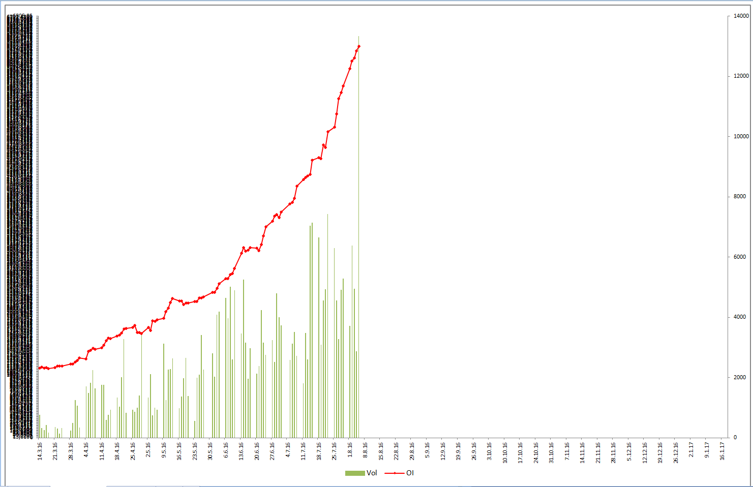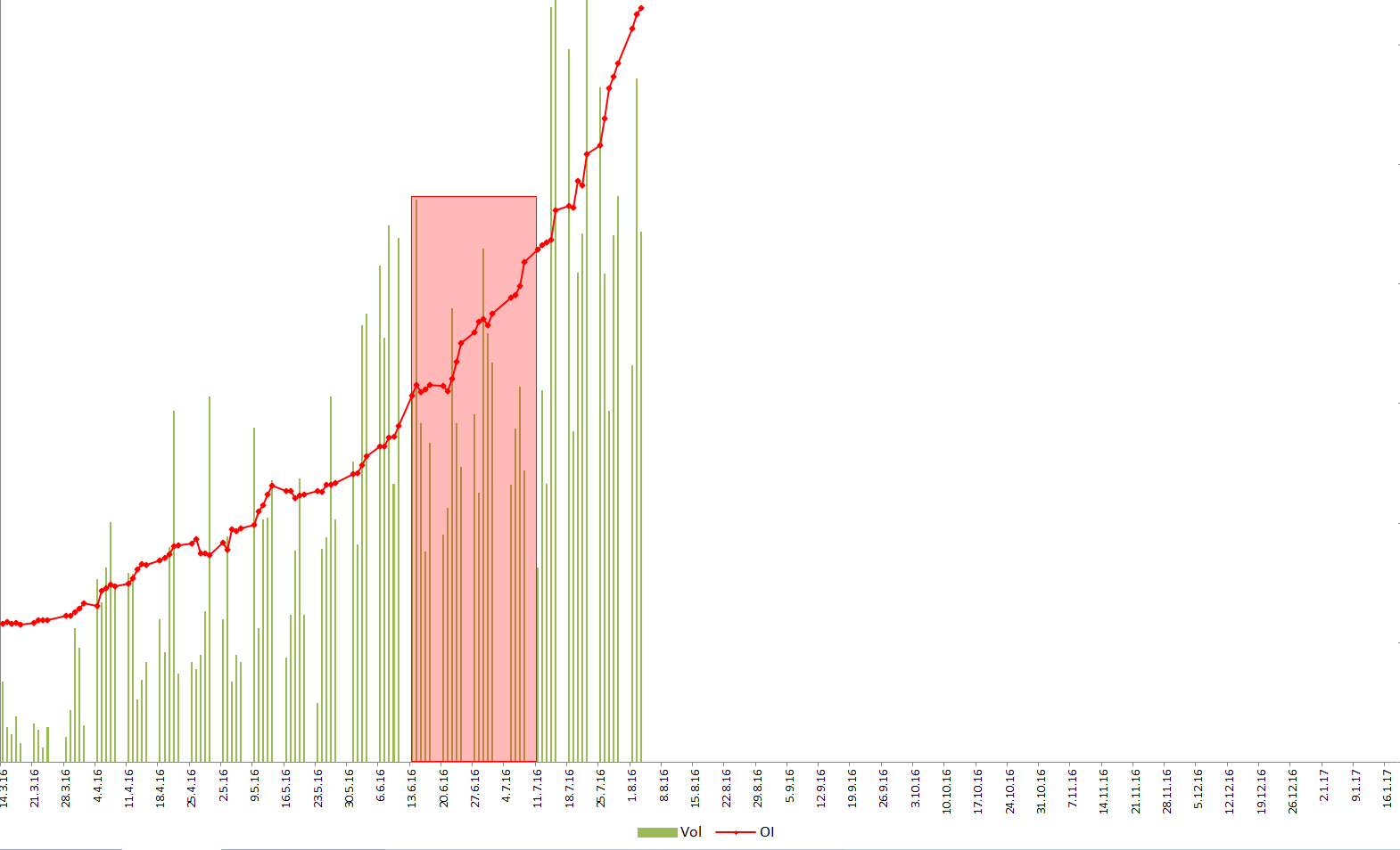 zu Grunde liegender Future ist september 16. Gestern war Close 401,25, Mai 17 - Close 468,75. Macht Deferenz von 67,50. Low am 05.07 bei Mai 17 Kontrakt war 465,75.