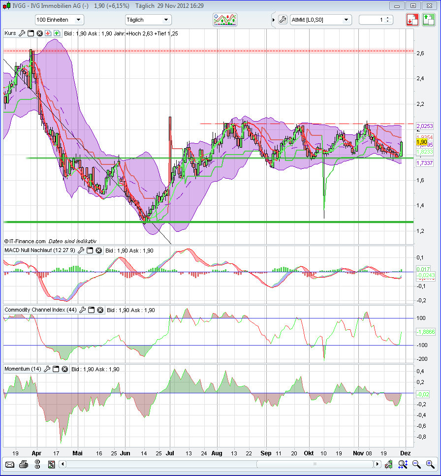 bei der ivg befindet man sich z.Z. in einem seitwärtstrend, der zwischen etwa 1,78 und 2,04 verläuft.