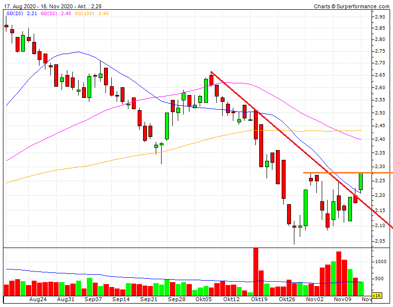 Die Rallye in der 2.+3.Reihe kommt dann meist etwas zeitverzögert. Vielleicht ja heute ein guter Anfang. Wäre schön wenn wir die 2,28 € noch überwinden könnten.