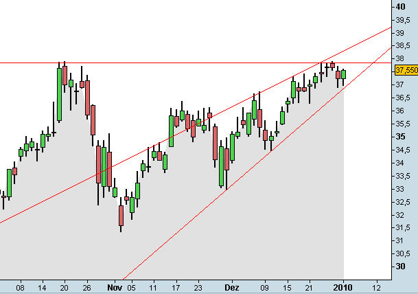 Die Schwaben finden langsam zu ihrem Selbstverständnis zurück als führender Premium-Hersteller. Gelingt das Vorhaben, schneller als der Markt zu wachsen, wird sich das auch wieder in steigenden Marktanteilen niederschlagen. DER AKTIONÄR bleibt bei seiner positiven Einschätzung. Daimler dürfte unter den Automobilaktien zu den Besten in 2010 zählen. Anleger sollten daher in der Aktie beziehungsweise dem MINI-Long mit der WKN TB2 7XY (aktueller Kurs: 12,96 Euro; Empfehlungskurs: 8,24 Euro; Stoppkurs: 10 Euro) investiert bleiben. Zum Neueinstieg rät DER AKTIONÄR nach wie vor erst nach dem Bruch der 37,90-Euro-Marke.