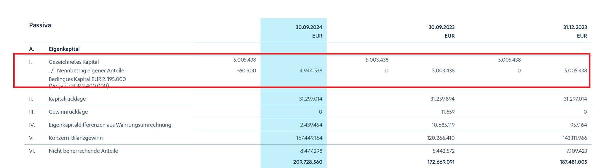 30. September 2024: 209,7 Millionen Euro