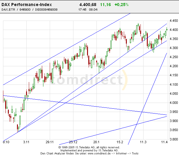 heute nachmittag, das finde ich komisch. Der DF ist 60 Punkte runter, der Dax gerade mal 10-15 Punkte. Gestern liefen die Taxen teilweise 1:1. Die Emis wollen wohl ihre Longs nicht zurückhaben und eröffnen dann am Montag mit einem Gap von 20 Punkten nach unten, würde mich nicht wundern. Täte den Shorts doch gut ...