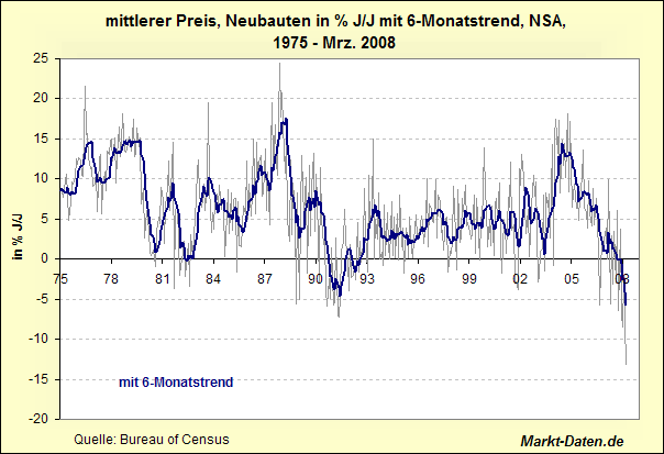 Da die US-Immobilienpreise von 1993 bis 2003 jedes Jahr wischen 3 und 6 % gestiegen sind und seit 2003 bis zum Top im Herbst 2005 sogar um jährlich bis zu 15 %, kann man nach der bisherigen Korrektur seit dem Top (knapp 10 %) noch längst nicht von "Schnäppchenpreisen" sprechen, nicht mals inflationsbereinigt.