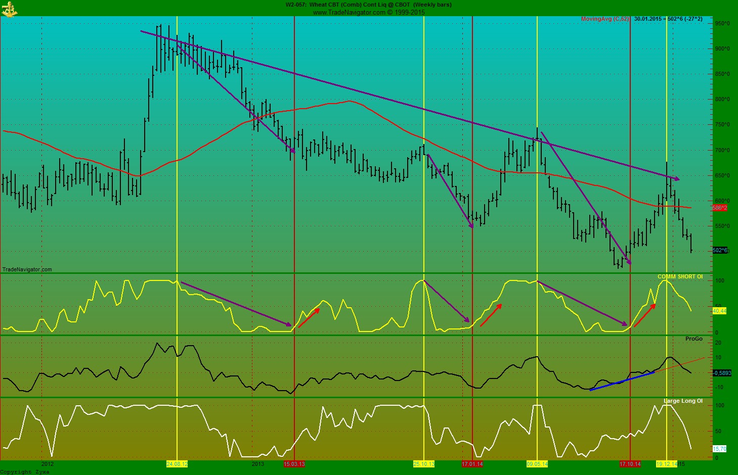 Zum 2ten cancle schleunigts dein Long auf Weizen, denn du Wettest gegen die Commercials und gegen die Shorts der Hedgefonds.