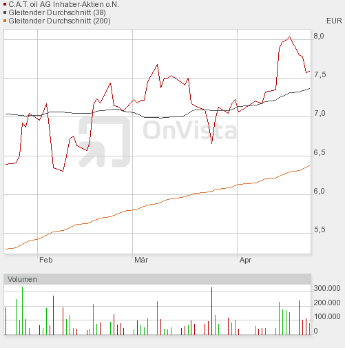 Die Verantwortlichen für das kurzfristig ausgerichtete Musterportfolio haben 601 Anteilscheine von C.A.T. Oil zu 7,95 Euro aufgenommen.
