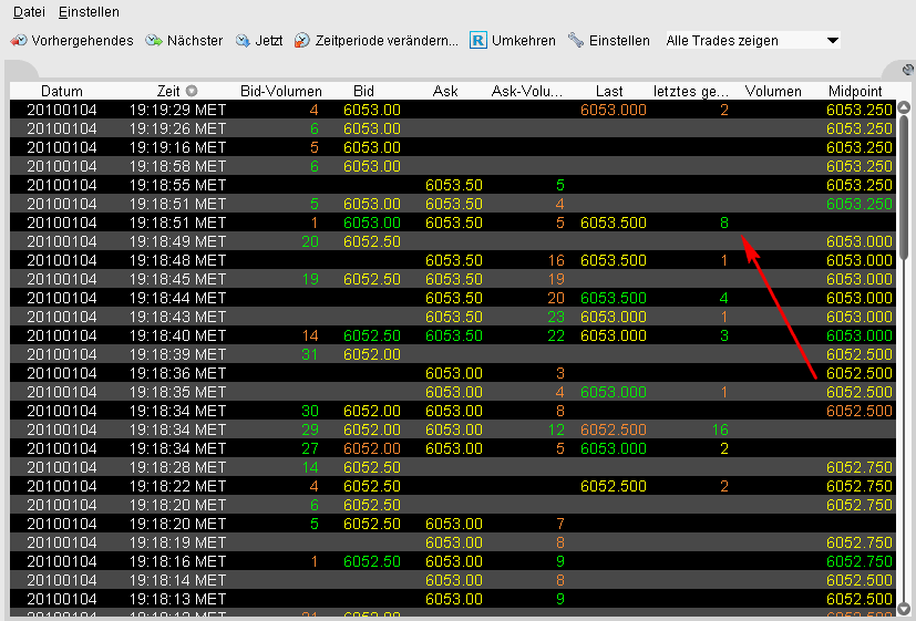 aber ich gebe dir gerne auch dieses times&sales hier ... bei mir sind irgendwie mehr Zahlen drauf ... was mich bei deinem aber auch wundern würde: da wären dann tatsächlich mehr als 50sec. keinerlei dax-futs gehandelt worden, was ich stark bezweifeln würde ...