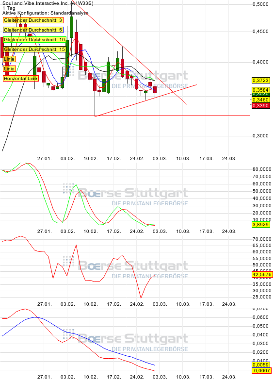 charttechnische Aussicht, der Keil der sich gebildet hat sieht einfach super aus! Auch die Indikatoren sprechen mich an, sie deuten darauf hin, dass es bald so richtig los geht! Dies geschieht leider erst mit der Veröffentlichung des erwarteten Spiels ("Last Day on Earth"), aber dann richtig! Aus der Sicht eines charttechnischen Anlegers sind dies gute Vorzeichnen, der RSI liegt knapp oberhalb der 30er Marke, der Slow Statistic generiert eine kleines Kaufsignal, in Verbindung mit dem MACD und dem Verlassen des Keils, wird ein starkes Kaufsignal generiert, der vor allem für Short Term Anlegern interessant sein könnte, desweiteren illustriert es einen charttechnischen Widerstand der bei 0,325€ vorherrscht. Was mir persönlich aufgefallen ist, dass sich nicht viele Anleger (deutsche) sich in dieser Diskussion beteiligen, es ist ein super Unternehmen mit spannenden Zukunftsperspektiven die eindeutig darauf hindeuten, dass wir gerade in diesem Moment ein Unternehmen aufwachsen sehen, dass sich ebenso erfolgreich entwickelt wie Zynga/Gameforge, klingt nach Zukunftsmusik? Nein denke ich nicht, weil an den unglaublichen Aufstieg des Multimilliarden Unternehmens Google hat auch vor Jahrzehnten kein Mensch daran geglaubt, und es ist allgemein bekannt, dass an der Börse alles möglich ist, es muss nur alles perfekt sein! Dieser Text spiegelt nur meine Meinungen/Ansichten zur der hier diskutierten Angelegenheit dar, es ist keine Kauf- oder Verkaufsempfehlung, jeder kennt das Risiko und entscheidet für sich selbst, ob eine Aktie attraktiv für einen ist oder nicht!