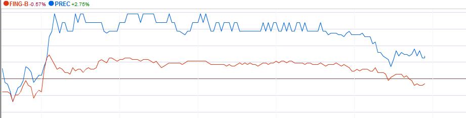 und kaum gibt FPC mal ein paar Prozentpunkte ab, ist PB nun mit 10% im Minus gerechnet von dem heutigen hoch bei 6,70 Kronen.