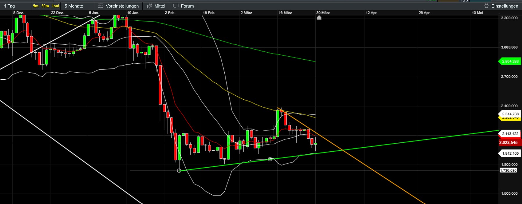 noch hält die unterstützung - guckt man dann in untergeordnete coins (poly und konsorten) tauchen dort fallende keile auf - ggf die hoffnung dass nun endich ein bisschen zurückkommt - aber noch zu früh - keile noch nicht ausgelöst