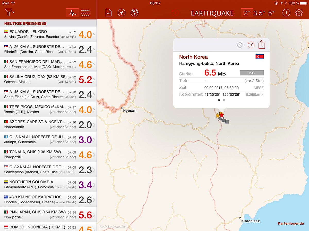Die App heißt EARTHQUAKE und verwendet Informationen führender Seismologische Institute? Unter anderem auch die des ISC (International Seismological Centre)