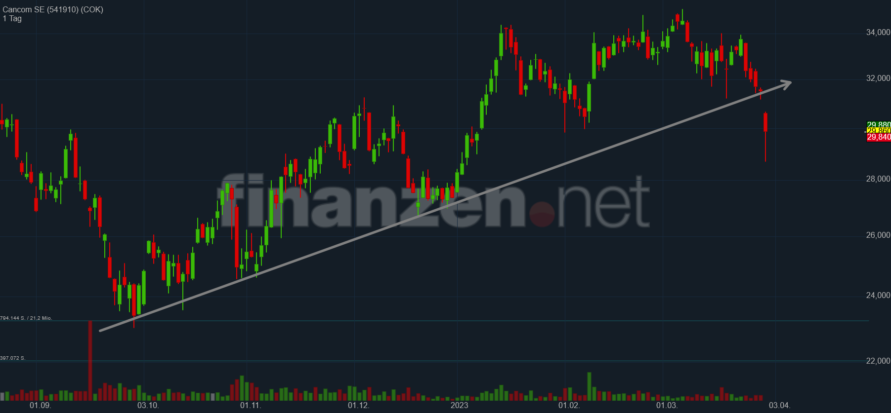 Interessant ist, ob der heutige Bruch des Aufwärtstrends, den wir ja seit Herbst 2022 sehen, nachhaltig ist, oder nicht. Die Konjunktur läuft, die Chipindustrie kann immer besser wieder liefern, somit sollte auch bei Cancom zusammen mit dem Sparprogramm langsam wieder die Sonne aufgehen.