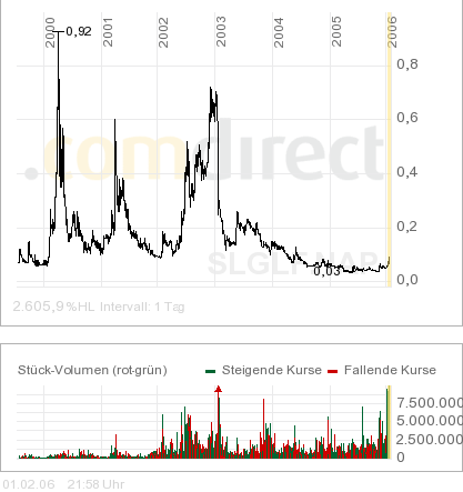 --> Silverado Gold: Der Anstieg geht weiter! Silverado Gold war fast Pleite, doch die Bush-Initi­ative scheint Silverado zu retten! Fantasie sollte bis 0,20 Euro reichen! Ist GreenFuel tatsächlic­h erfolgreic­h oder verkündet Silverado positive Gold News, wird der Kurs explodiere­n --> +1000% möglich!!!­