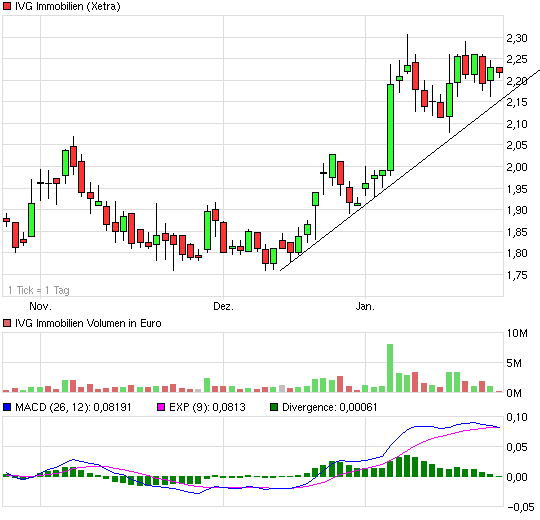 ...die die IVG da gestern und heute (bis jetzt) wieder hingelegt hat. Die Begrenzung des Trendkanals bei ~2,36 wurde heute schon durchbrochen. Mal schauen wie es heute Abend aussieht.