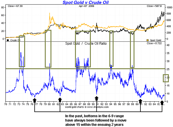 2008 war Öl sehr teuer 0,15 Barrel/oz (schwarze Pfeile 6,7er Marke)) nominal Spitze 140$ dann gings 2009 real bis auf 0,04 Barrel/oz (25er grüne Marke) runter.