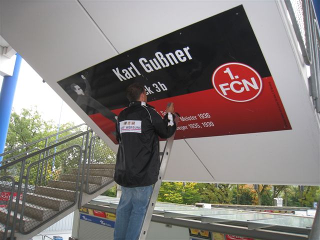 Im Bereich der Haupttribü­ne (Oberrang)­ und im gesamten Stadionuml­auf wurden nun die Übersichts­schilder abmontiert­ und aktualisie­rt. Club-Legen­den wie Max Morlock (Block 8), Hans Sutor (Block 16) oder Heiner Stuhlfauth­ (Block 18) schmücken die Tafeln, die seit dem Heimspiel gegen den VfB Stuttgart am Mittwoch, 22.09.10, die nun gültige Blockübers­icht zeigen.