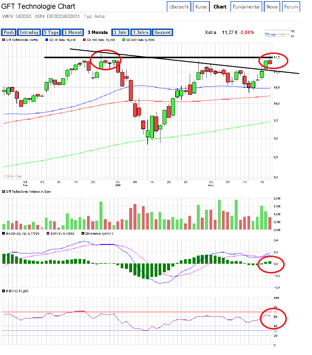 auf der 11,20 gegönnt. Sieht gut aus zur Zeit. GFT macht die Kursschwäche des Marktes nicht mehr. Es scheint tatsächlich so zu sein, dass die Verkäufer bei GFT fertig sind.