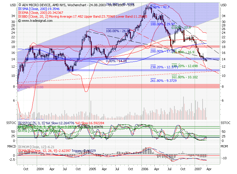Statt dessen habe ich vor zwei Wochen überlegt, AMD als long zu kaufen. Nachdem ich mich mit den Hintergründen befasst habe (Posting 69), hab ich dann aber davon abgesehen. Ich denke, es wird noch günstigere Einstiegskurse bei AMD geben. Eher würde ich jetzt bei 19 Dollar Intel kaufen. In dem Preiskrieg leiden beide, AMD könnte aber mit Pech unter die Räder geraten.