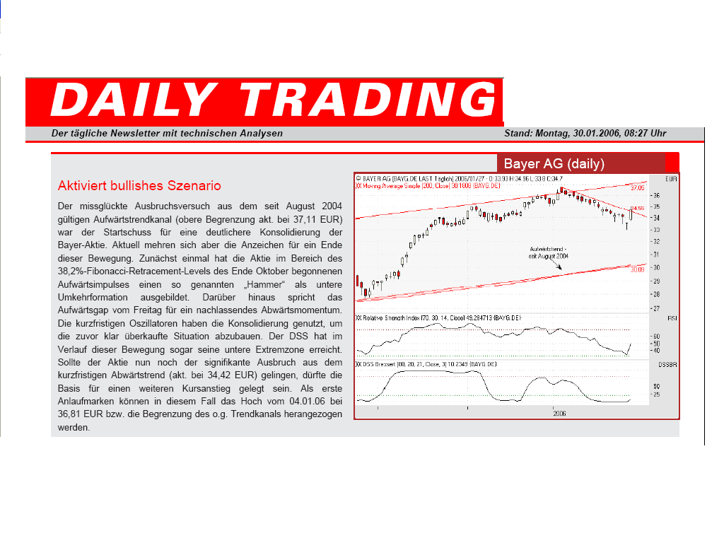 Der Kurstrend der letzten Wochen zeigt leicht abwärts, das Momentum des 35-Tage-Trends beträgt minus 1%, beim Dax beträgt dieses +9%,