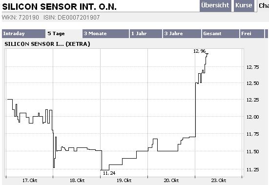 Die Analysten von AC Research erhöhen ihr Rating für die Aktien von Silicon Sensor von zuvor "halten" auf jetzt "akkumulieren". (24.10.2006/ac/a/nw)