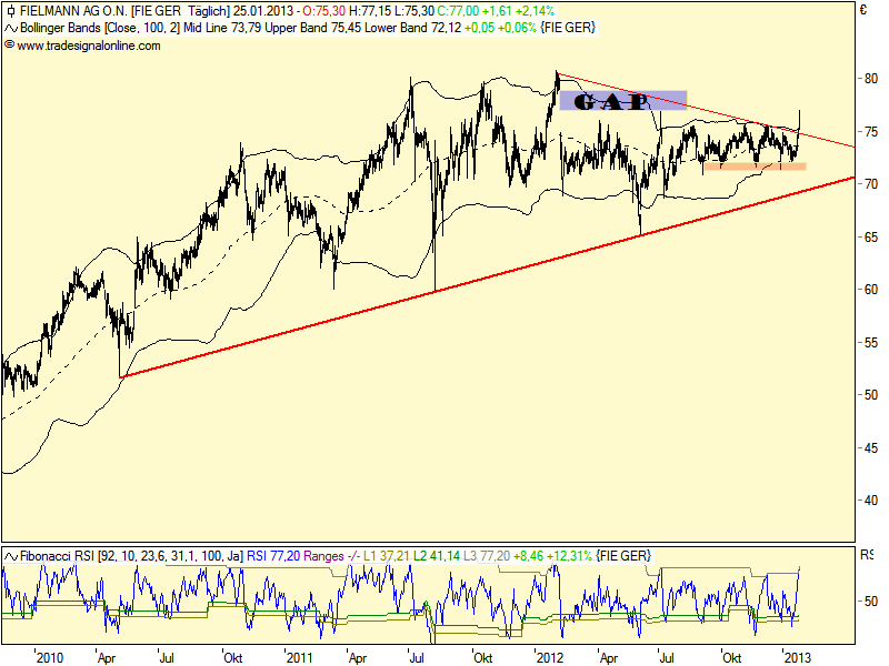 Fielmann Mustergült­ig... Über 77 € sollte zunächst das GAP in Angriff genommen werden, danach das ATH...  Nach unten sollten die 76 € nach Möglichkei­t auf SK Basis halten.