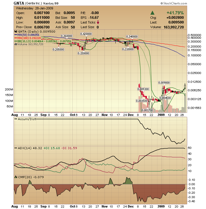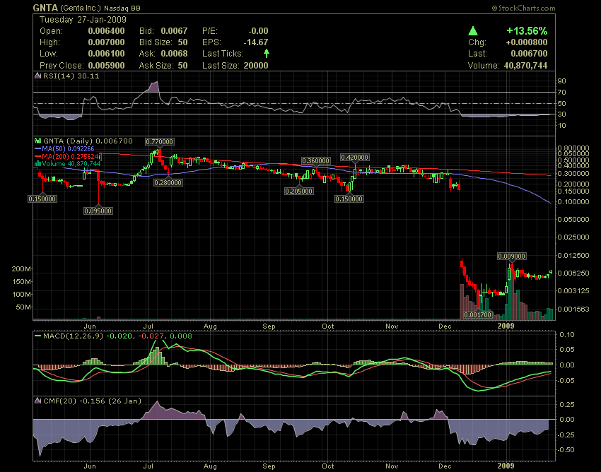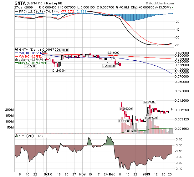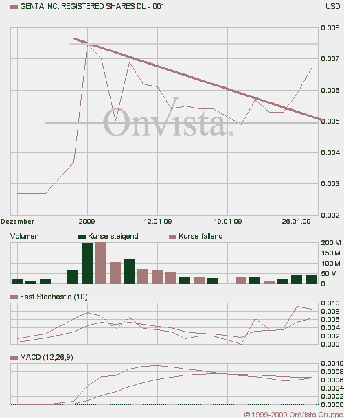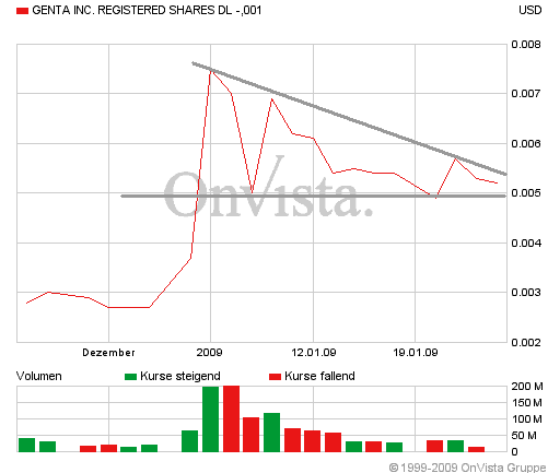 Wie schon gesagt in den kommenden Tagen wirds richtig interessant denn ab einem Kurs größer 0,012 Dollar befindet sich GENTA im Niemandsland also im fetten DOWNGAP welches sich Anfang Dezember 2008 aufgetan hat.