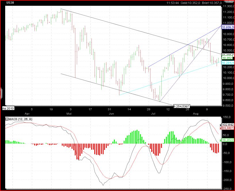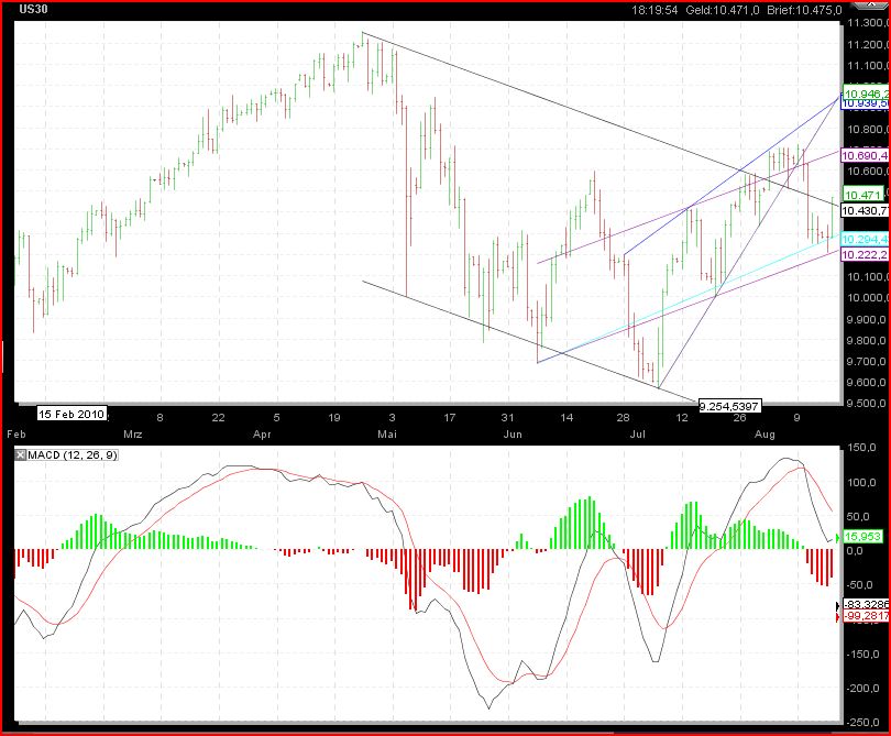 Ich denke darüber nach im Dow den Short zu lassen ihn gegebenfalls auszubauen und im Dax bei einer Korrektur long zu gehen. (long und short gleichzeitig geht bei CFD`s nicht)