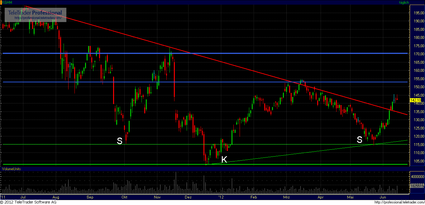 Close am 8. an Widerstand, daxmässig per Gap drüber mit Close am Widerstand zum Luftholen sozusagen und mit Schwung zur 145.