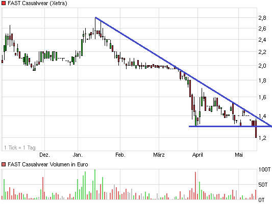 Die werden ja nicht eine neue Produktionsanlage bauen, wenn sie nicht davon überzeugt sind, dass der Umsatz in den nächsten Jahren weiter wächst; und das vor allem bei der eigenen Marke FAST (höhere Margen). Die Bewertung ist bei den Planzahlen für 2013 -Umsatz 124Mill-Ebit 25Mill. und dieser Ek_Quote eher als Grotesk einzustufen. Die Aktie hat enormes Aufholpotential. Hier sollte eine Verdoppelung erst der Anfang sein.